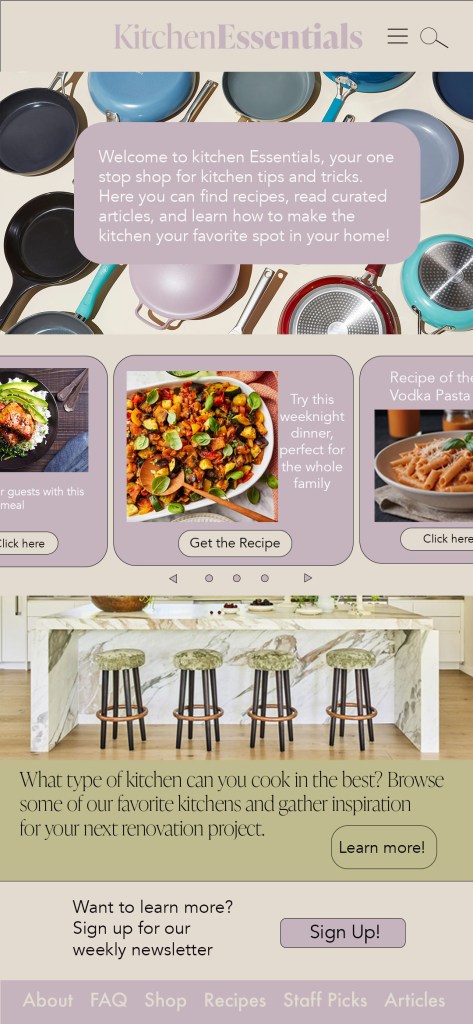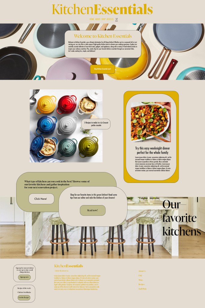 This assignment was to create a home page based on a topic of interest. I love cooking and kitchen ware, so I opted to focus it on that.
